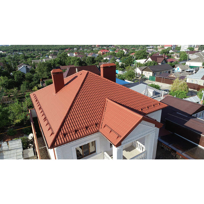 Металлочерепица Grand Line Kamea (Камея) 0,45 Полиэстер RAL 3009 Оксидно-красный
