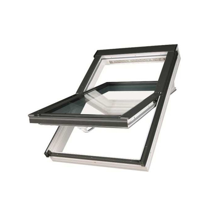 Мансардное окно Fakro РТР-V U3 белое с вентиляционным клапаном из многокамерного профиля ПВХ со стеклопакетом U3 серии PLUS со среднеповоротным открыванием. Стальная конструкция петель с пластиковыми направляющими не только смягчает ход оконной створки, но и придает необходимую прочность и жесткость в условиях ветровых и снеговых нагрузок.