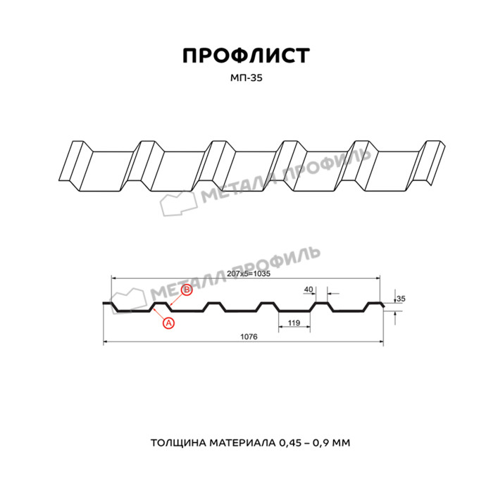 Профилированный лист МП-35х1035-B (ПЭ_Д-01-9003-0,45)